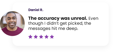 Every Tuesday & Thursday at 6PM ET, we pick 5 people for live readings. Even if you don’t get picked, you might still hear a message meant for you.